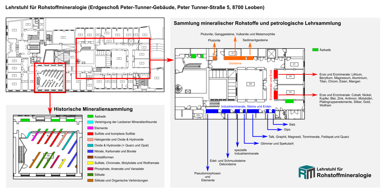 Die Historische Mineraliensammlung kann nach Voranmeldung besichtigt werden und das Probenmaterial der Mineralogischen Sammlung steht für wissenschaftliche Projekte zur Verfügung.